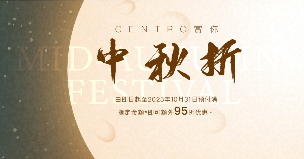 客户于2025年10月1日起至2025年10月31日预付订造家俬定金*并于指定期间成功购买CENTRO®订制家俬达指定金额*即可额外95折优惠。